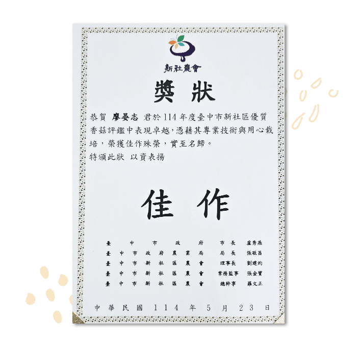 。因此,我們不委外、不代工,全程掌握生產過程,確保每一朵香菇都自然生長、品質穩定,香氣濃郁、口感紮實,是真正來自土地的滋味。